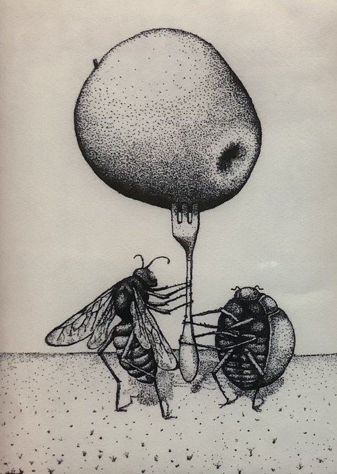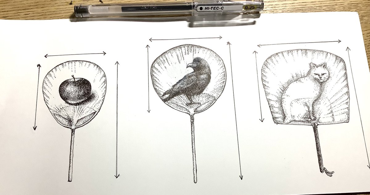 #来民渋うちわ とコラボして、 創作うちわの企画を計画中♫ 今、図案を仕上げている所です。 #熊本県伝統工芸品 #山鹿市来民 #drawing #picture #Pointillism #Ballpointpendrawing #pendrawing #猫画 #カラス #りんご #ペン画 #点描画 #猫画 #ボールペン画 #ハイテックC025 #catdrawing