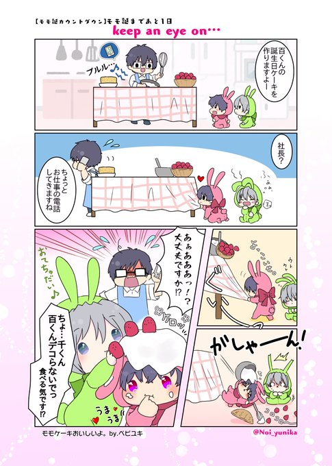 #モモ誕カウントダウン2022 🍑あと1日🍼 目を離しては、いけない。別題:よっこいももせ 👓「静かだなーと思うと、大抵大変なことになりますね」 (ユキモモ) みんなにサプライズ!(のつもり)で、カラー漫画にしてみました♡楽しんでくれると嬉しいな💕 カウントダウン0日目もお付き合いください〜w