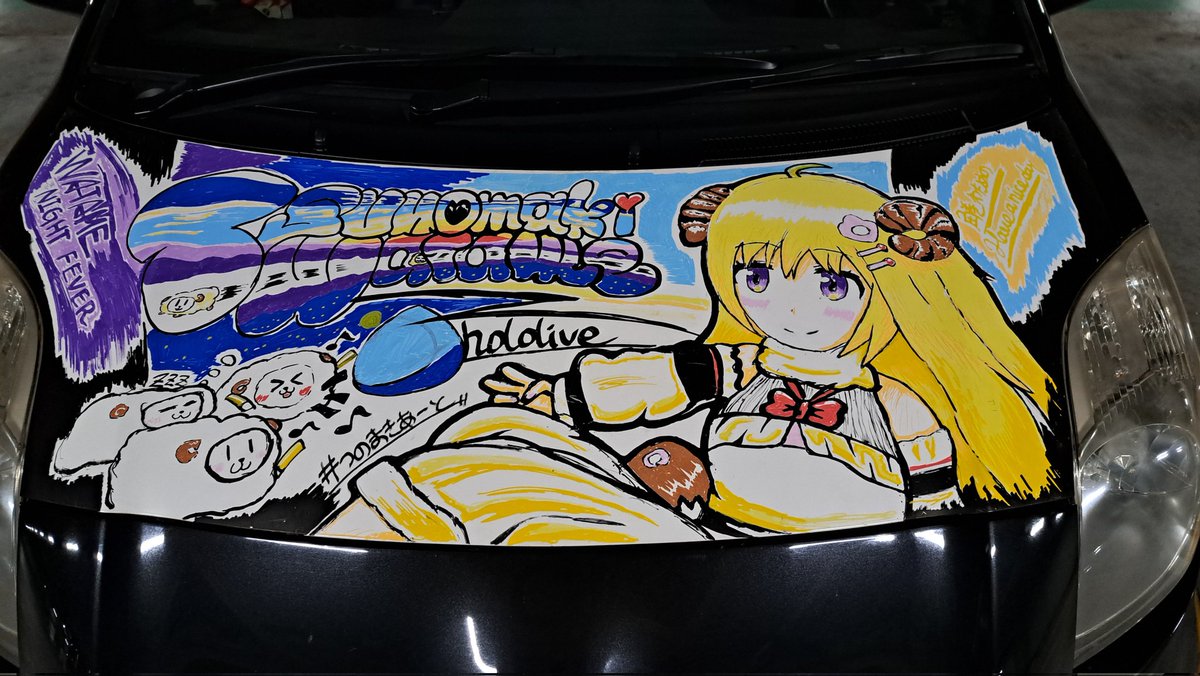 #つのまきあーと @tsunomakiwatame (角巻わため) デザイン、施工、グラフィティ、全てポスカで自作で。 角巻わため痛ボンネット製作しました🐏