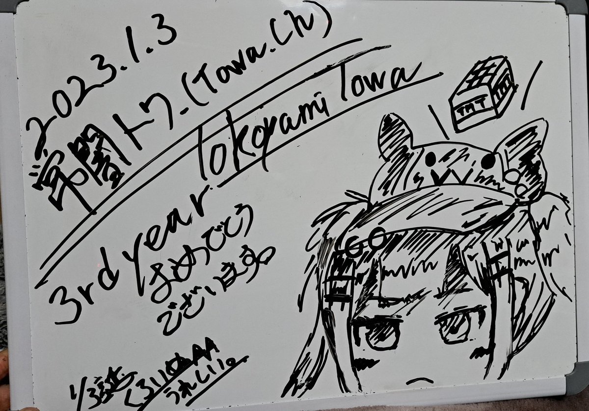#TOWART @tokoyamitowa 3周年おめでとう!最近良さ知ったばかりの新参眷属ですが、初配信日が私の誕生日と同じ1月3日! 素敵な歌声を、無理しすぎないようにいつまでも響かせてください! トワ様おめでとう!!!