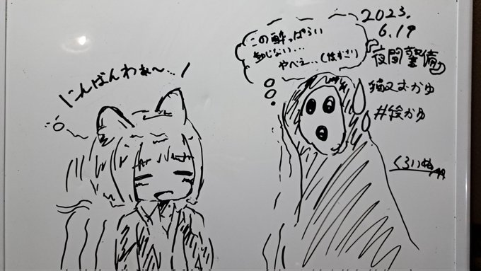 #今月描いた絵を晒そう モノクロホワイトボード ポスカ カラーホワイトボード ホワイトボード絵コピー、色鉛筆着色
