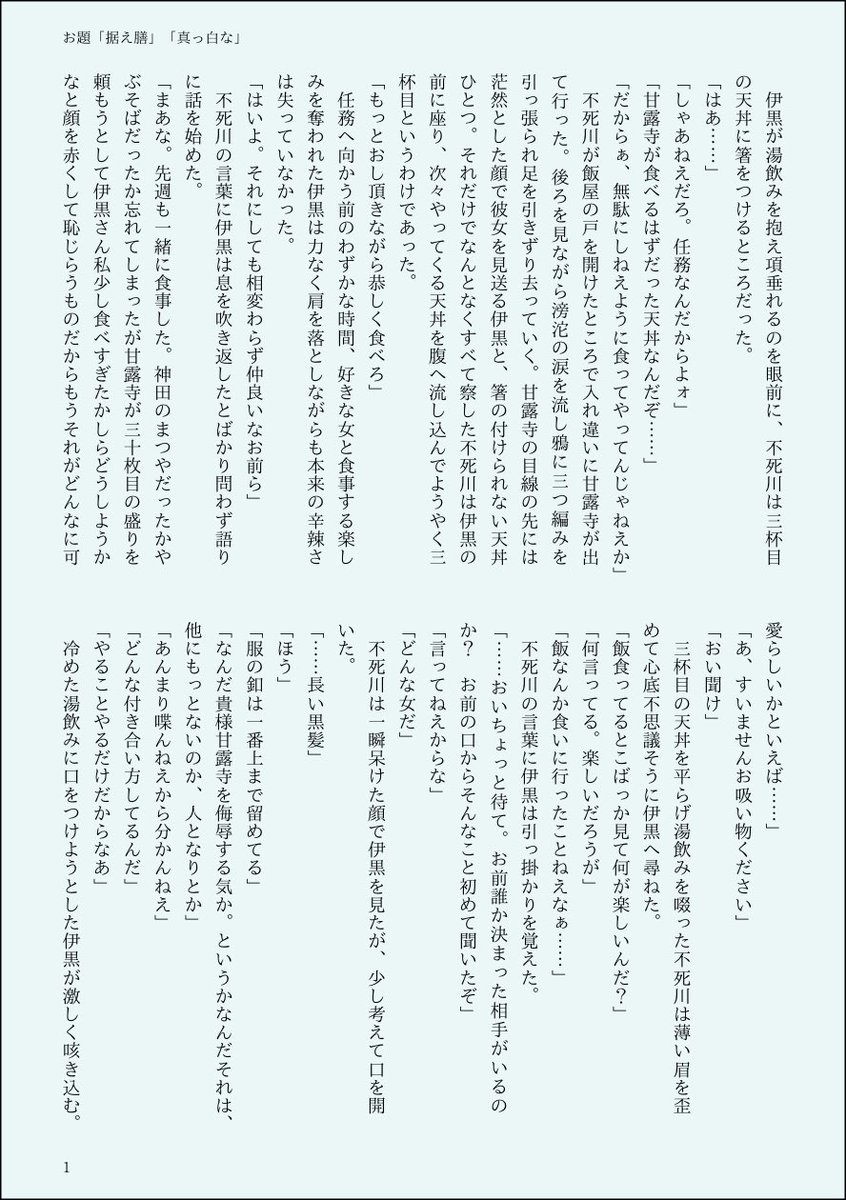#さねぎゆ版ワンドロワンライ お題「据え膳」「真っ白な」でお邪魔します。 二十一歳組。イグッティとさねみが噛み合わない恋バナする話