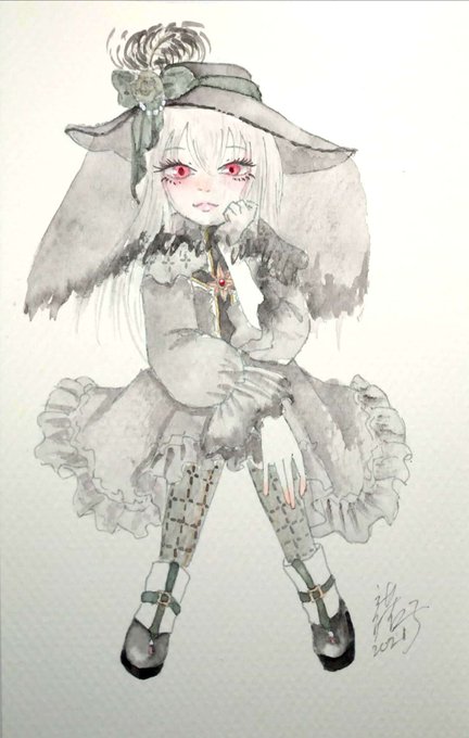 0 2 My lovely Gothic OC here . #Watercolor #gothiclolita #illustration #artwork #水彩 #插畫 21/01/08 12:36