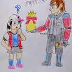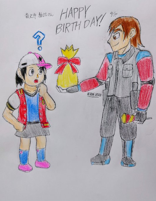 突然ですが森之寺柚比さん(@yurby0417)の誕生日絵としてすまユビちゃんにプレゼントを渡すうち子のレクイナ(久々に)を描いてみました! Happy Birthday!