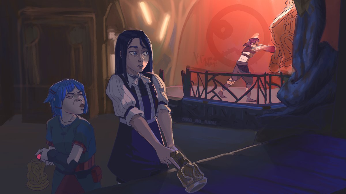 Caitlyn, get out of there. That's not your family. IDK, maybe she followed Jayce and she ended up down there somehow?? Just something nice to cope I guess. #Arcanefanart #Arcane #Piltoversfinest