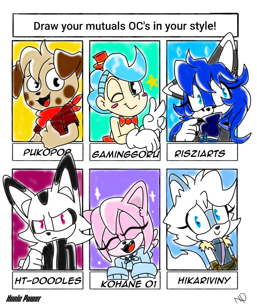 draw your mutuals ocs in your style by Nonic Power hey are the artists that I admire a lot, I really like your ocs they are wonderful: ✨ @pukopop @TheGamingGoru @ArtsRiszi @HtDoodles @kohane01 @hikariviny #SonicTheHedeghog#sonicfanart#sonicart#sonicoc