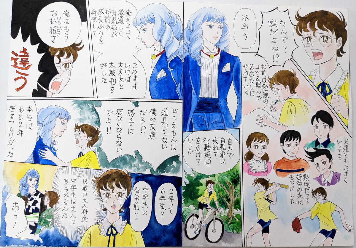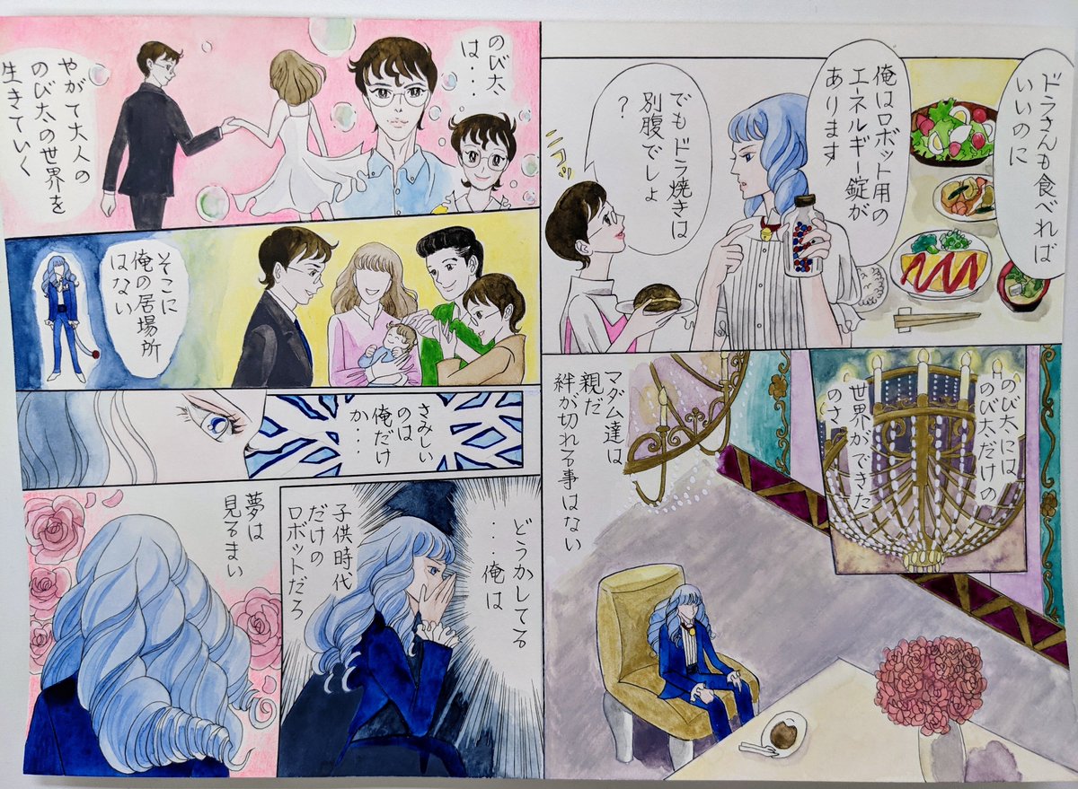 ドラはのび太くんの上達を見せて両親に喜んでもらいたいんです。 のび太くんは習得の喜びを知っていますね。 #絵描きさんと繋がりたい #アトリエの系譜3 #みんなで楽しむTwitter展覧会 #ドラえもん #アナログ #漫画が読めるハッシュタグ #ArtistOnTwitter