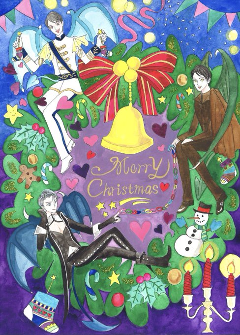 悪魔🦹😈だってクリスマス祝って良いよね🌹✨ 右から時計回りに長男次男末っ子の3兄弟です。 #絵描きさんと繫がりたい #illustration #イラスト王国 #イラスト #みんなで楽しむTwitter展示会 #4コマR #芸術の輪 #芸術同盟 #アナログ作家フェス_水彩 #創作の狼煙