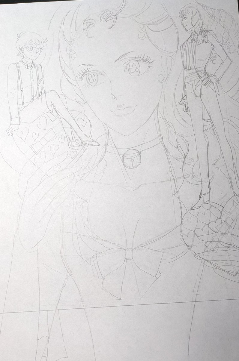 下描き→ペン入れ→彩色途中2枚。 人物の色は決まっているので、チョコレートボックスや背景をどう塗って行こうか楽しみながら作業しました🌹✨ #絵描きさんと繫がりたい #絵描きさんと繋がたい #イラスト好きと繋がりたい #イラスト好きさんと繋がりたい #みんなで楽しむTwitter展覧会