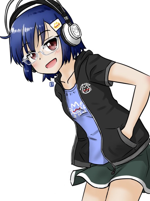 ゆーきしぐまさん @yukikgr のオリキャラから、あーちゃんを僭越ながら。最近暑いので済みません、服装は最近暑いのでこうなりましたがこういうの着てくれるかしら、最近割とルーズなのを好んでおられましたが。(1/2) #よそのこ #ネコとイヌとメガネっ娘 pixiv.net/artworks/11025…