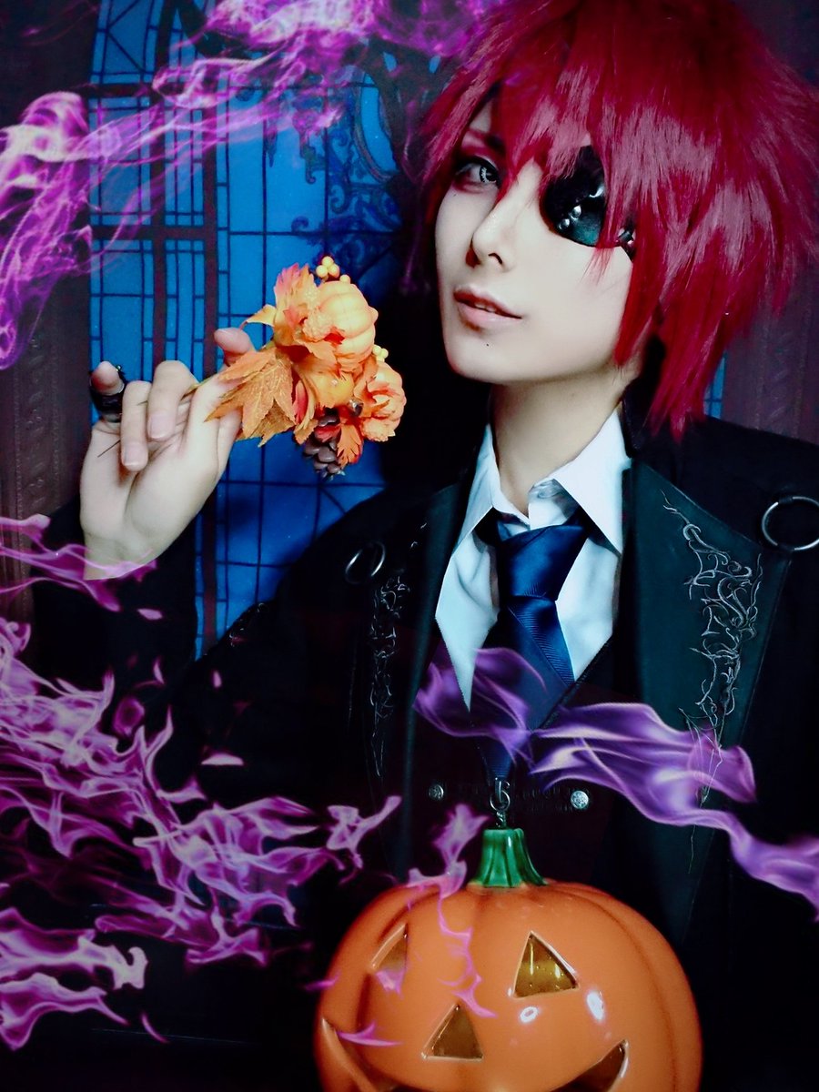 #アシフェスえあ第3回 に参加させて頂きます~٩(ˊωˋ*)و🎃🎃🎃 既出ですがマレウス🐲エース❤兄ッポラ♥創作キャラの緋君🎃🦇🕸 全てアシストさんの背景布使用( *´꒳`*) #ハロウィン #Halloween2020 #宅コス #おうちでハロウィン #ツイステハロウィーン #twstレイヤーさんと繋がりたい #創作