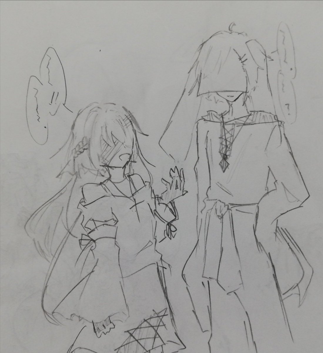 0 11 #アナログ #イラスト #オリキャラ うちの子服装びふぉあふ 名無しの左手以外2人とも 萌え袖脱却 そして毛玉は髪形変わったのと狐面ずらして顔全面出るようになりました ......なーんか比較のためとはいえ身長差ある2人が同じ高さに並んでるって違和感しかないなぁ...() 22/10/13 19:25
