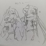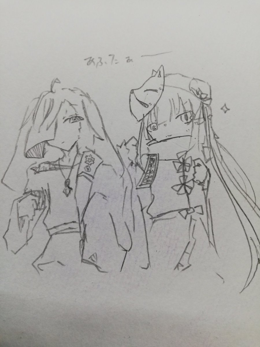 #アナログ #イラスト #オリキャラ うちの子服装びふぉあふ 名無しの左手以外2人とも 萌え袖脱却 そして毛玉は髪形変わったのと狐面ずらして顔全面出るようになりました ......なーんか比較のためとはいえ身長差ある2人が同じ高さに並んでるって違和感しかないなぁ...()