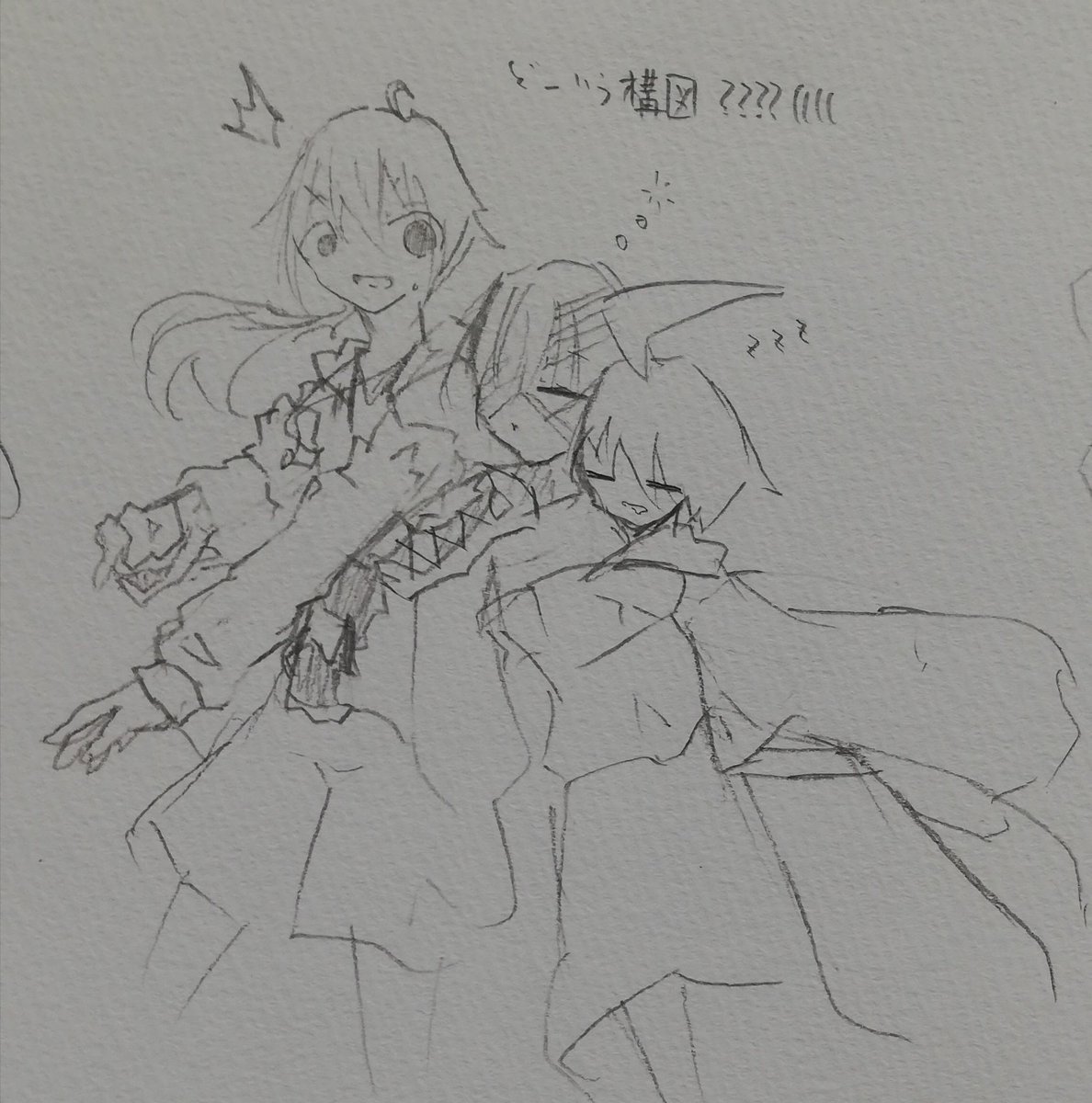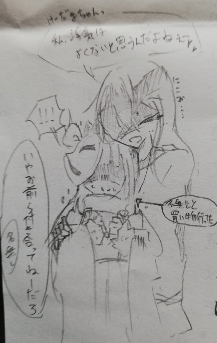 #アナログ #イラスト #オリキャラ うちの主と黒ノラっで大体いつもこんな感じ() うちの創作で唯一のクソ鬱枠にしてクソネタ枠
