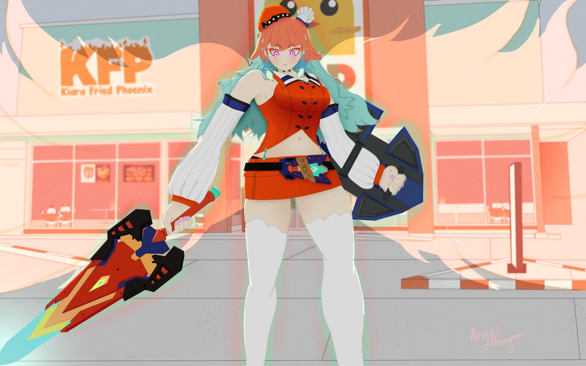 Kiara Takanashi gets ready to defend KFP against the great TakoEats invasion of 2022. #ArtsOfAshes #HololiveEN #hololivefanart