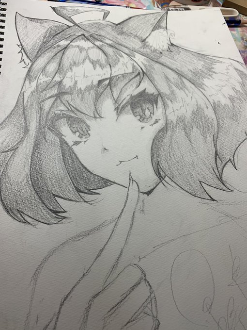 昨日のテストの合間に描いたうろ覚え沙花叉~! デジタル移行して一発目は沙花叉に決定だな。可愛いからな。うん。 #さかまた飼育日記