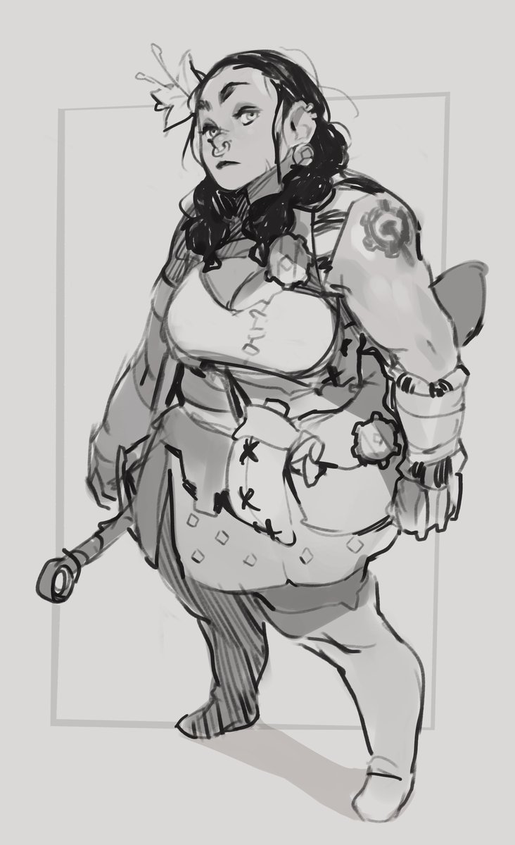 Sketched one of my dwarfs from Dwarf Fortress. She's a hauler who got conscripted as a shortswordwarf, cause we won't be needing much hauling anymore if that weredingo gets past the moat. Legit thought that game would be less addictive after playing Rimworld, but boy was I wrong.