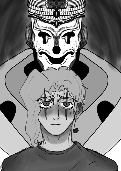 Here's my drawing for spooky month! I had something really cool planned for this but Twitter doesn't allow png. You would've been able to see death 13 only by downloading :'). #kakyoin #Noriaki #JJBA #jjbafanart #花京院典明 #JoJosBizarreAdventure #creepy #death13