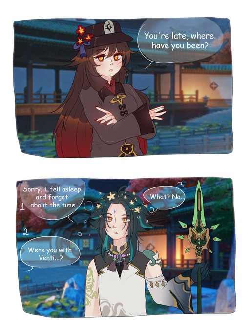 I'm too lazy to translate it, who understood that understood (⁄ ⁄•⁄ω⁄•⁄ ⁄) . . #GenshinImpact #原神 #Xiao #venti #xiaoven #genshinimpactfanart