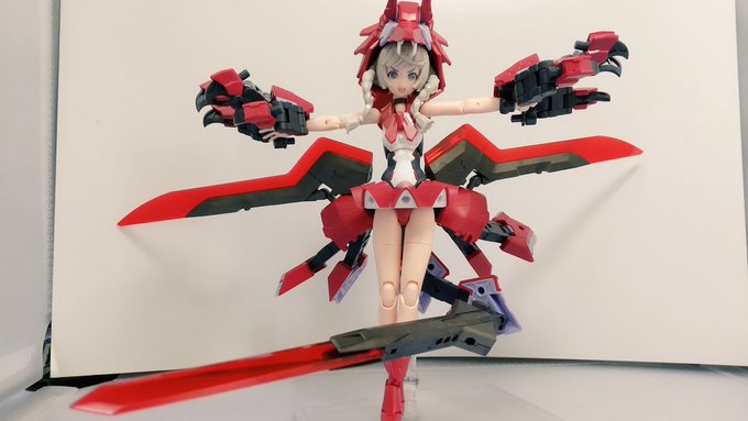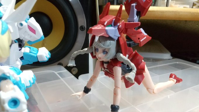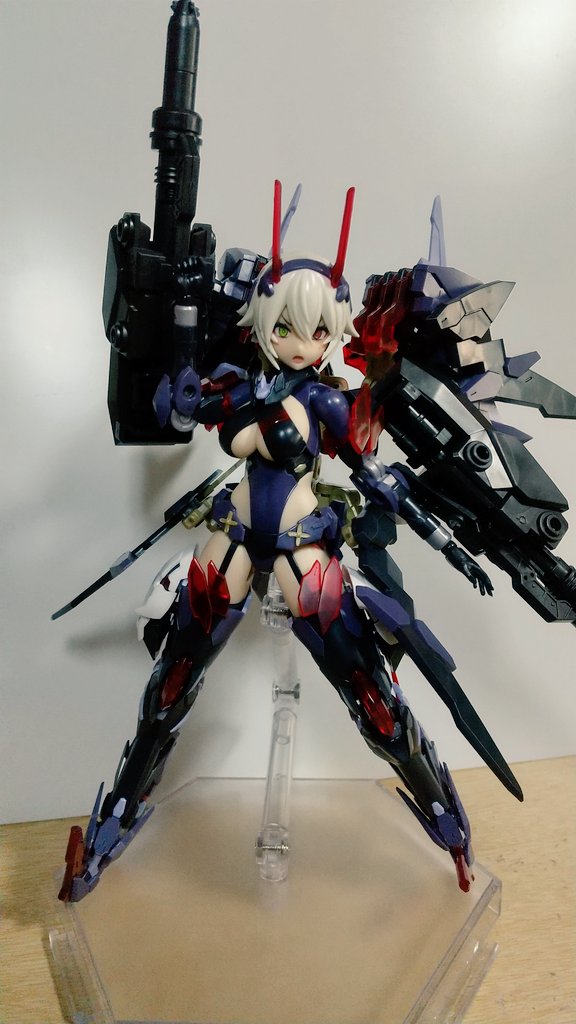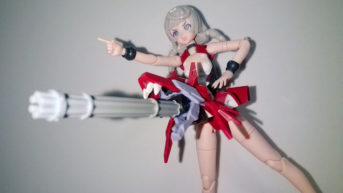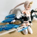 7 39 スサノヲちゃん組み換えがてらインパクトナックルのバンカーも持たせてみた マッシブなボディからのとっつきは多分強いと思います #メガミデバイス 22/04/24 13:34