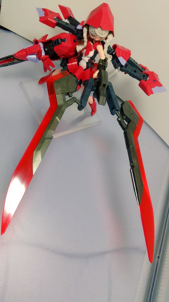 赤ずきんちゃん、対狼さん用に銃は装備したからハサミに見立てたクロー的なのも装備してもらった 展開するとデカイな… #メガミデバイス