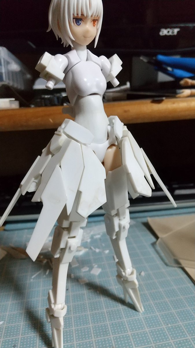 プラ板で作った足が少し盛れてきた しかし気が向いた時にプラ板工作してるとはいえとんでもない牛歩だ #メガミデバイス