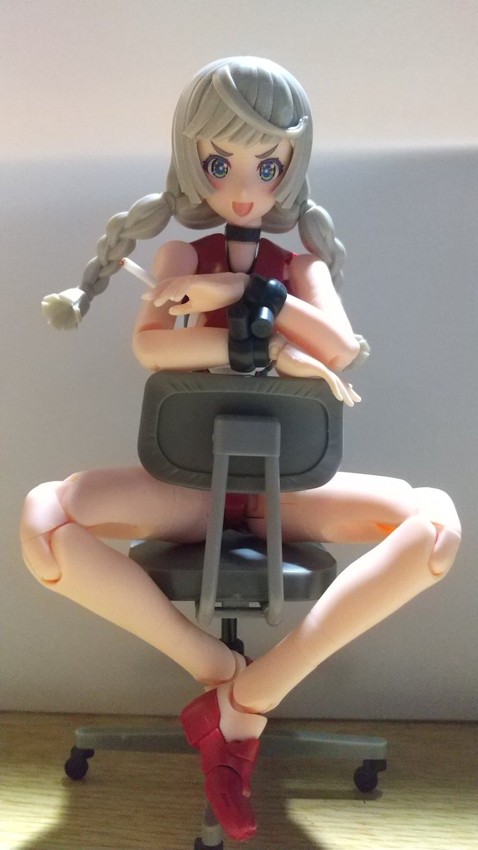 プラ板の端材からタバコ作った 表情がそれっぽかったので赤ずきんちゃんに持たせてみた #メガミデバイス