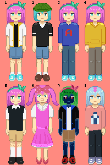 Aubrey in different clothing! Also 2, male Aubrey, is Blueberry, and I like him. Thank you Emerald on Discord! BIG HELP! #pixilart #pixelart #OMORI #OMORIFANART #OMORIAUBREY