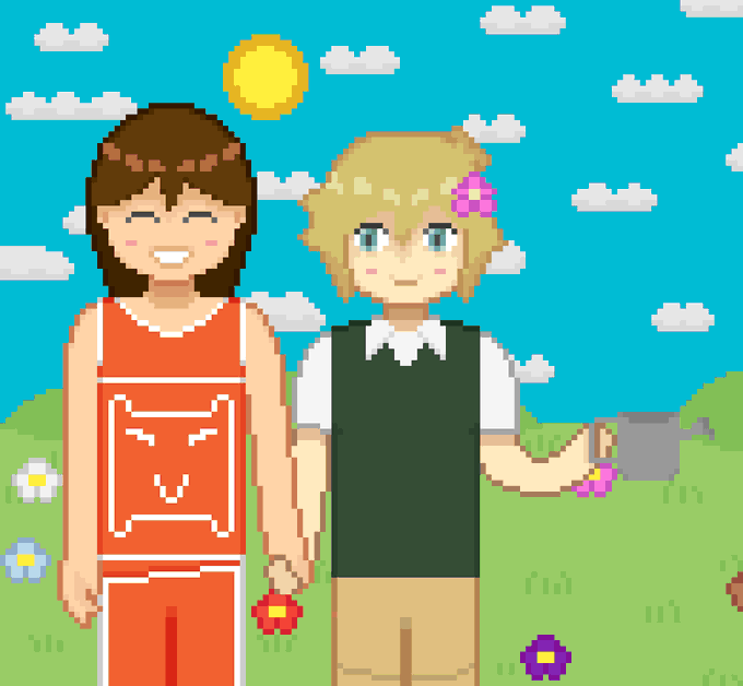 Kel and Basil going on a date in the field! Don't ask why Basil is bringing a watering can, they are both having fun regardless. #pixilart #pixelart #OMORI #OMORIFANART #catiflower