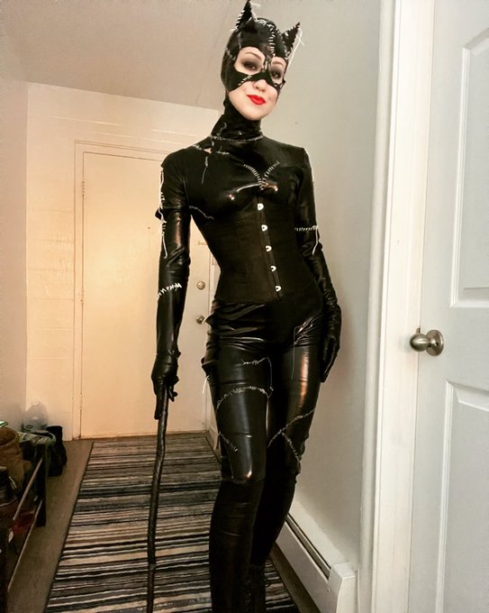 Michelle Pfeiffer Catwoman cowl done! This is the revamped style and I’m so psyched! Vinyl is the patent vinyl from @MJTrendsFabrics its perfect for cowls! #catwoman #cosplay #michellepfeiffer