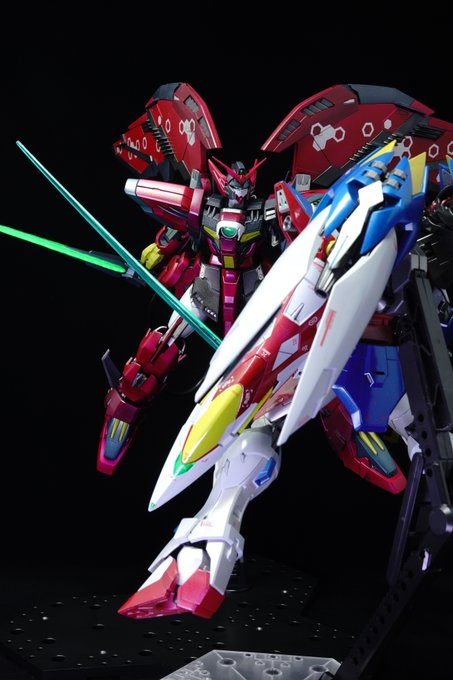 撮影終了 2体を組み合わせる難しさよ…… 撮影ボックスが狭く感じる…のは、ウイングバインダーなどを広げるから… 部屋で展示するにしても場所を取りすぎる…orz #ガンプラ #ガンプラ好きと繋がりたい #ガンプラ好きな人たちと繋がりたい #ガンプラの画像を貼るとRTされると聞いて
