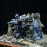 #ガンプラ #ジムスナイパー2 40年ぶりくらいにジオラマ ビルは既存品 それ以外は100円ショップ フォトフレーム 木粉ねんど2個 速乾コンクリート2袋 速乾ボンド2個 木板1枚 の800円 つづく #ガンプラ好きとつながりたい #ガンプラ好きと繋がりたい #ガンプラの画像貼るとRTされると聞いて