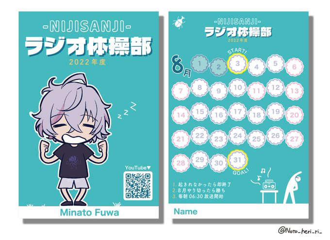 2 18 #にじさんじラジオ体操部 #絵スコート 2022年度版スタンプカード作りました! (データは返信欄に続きます) 22/08/03 23:24