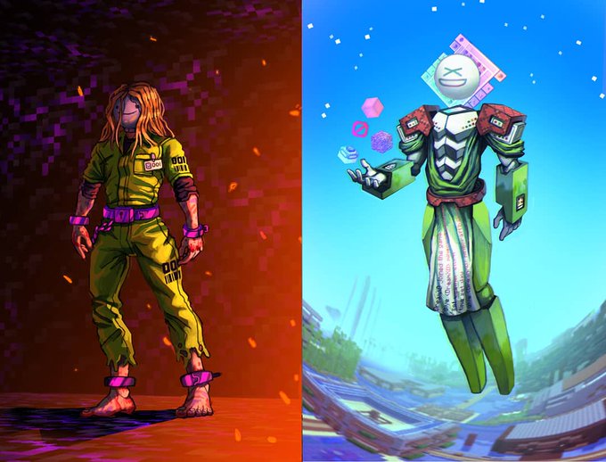 Prisoner and "XD" aka God @dreamwastaken designs. How do you blow up with #dreamsmp fanart? #dreamsmpfanart #dream