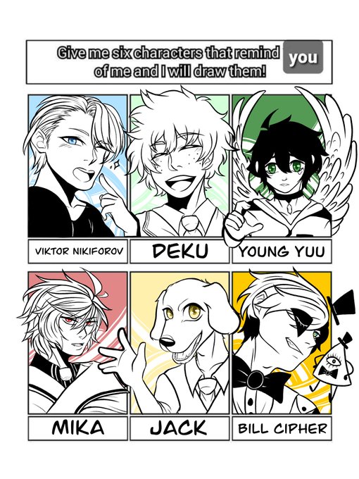 #SixFanarts #sixcharacters Didn’t expect some of these characters Lolol - #YuriOnIce #viktornikiforov #MyHeroAcademia #BokuNoHeroAcademia #Deku #izukumidoriya #seraphoftheend #owarinoseraph #mikaelahyakuya #yuichirohyakuya #BEASTARS展 #BillCipher
