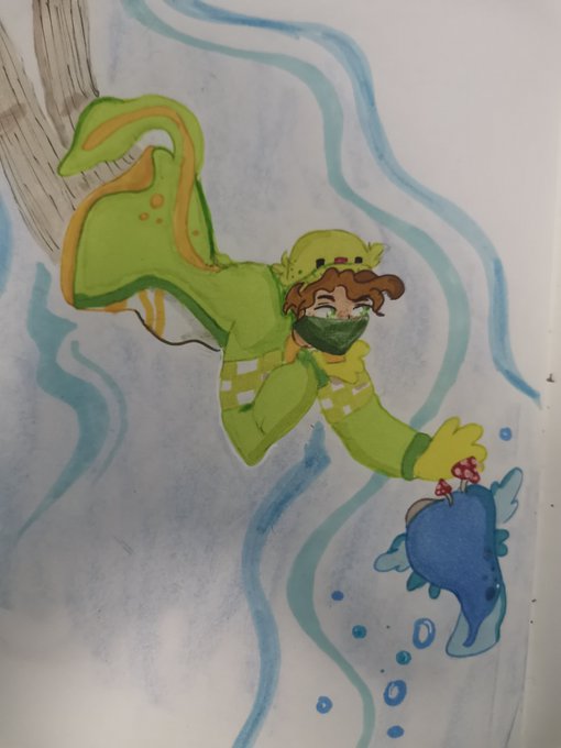 He swim 🏊♂️ (likes are very much appreciated) 💚💚 #rikokoudtiys #dreamfanart #dreamwastakenfanart #georgenotfoundfanart