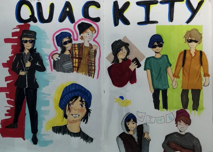 I was supposed to post this on quackitys birthday but I'm late 😬 Anywho quackity and friends!! [Pls rts ] 💙💛💙💛 #quackityfanart