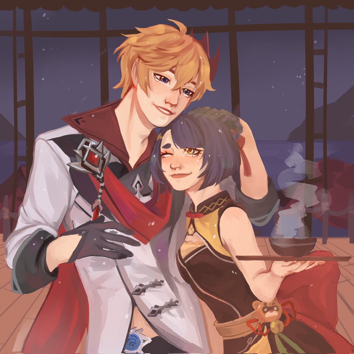 Я затрейдилась с девочкой в инстаграме😳 Она попросила меня нарисовать Тарталью и Сян Лин, я не виновата #genshinimpactfanart #Genshin #genshinimpact #xianglin #tartaglia