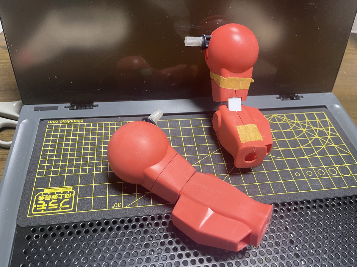 #旧キット #ガンプラ 1/60ゲルググ #ガンダム #ガンプラ改造 #ガンプラの画像貼るとRTされると聞いて #ガンプラ好きな人と繋がりたい 腕部分の後ハメ加工強度がかかるので一応1ミリ真鍮線2本で軸打ちしておく❗️ 脚部の後ハメどうしようかな?