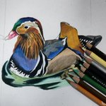 「おしどり夫婦」の元になってるオシドリ でも実際は一夫多妻制なんだとか… #アナログ #色鉛筆画 #オシドリ