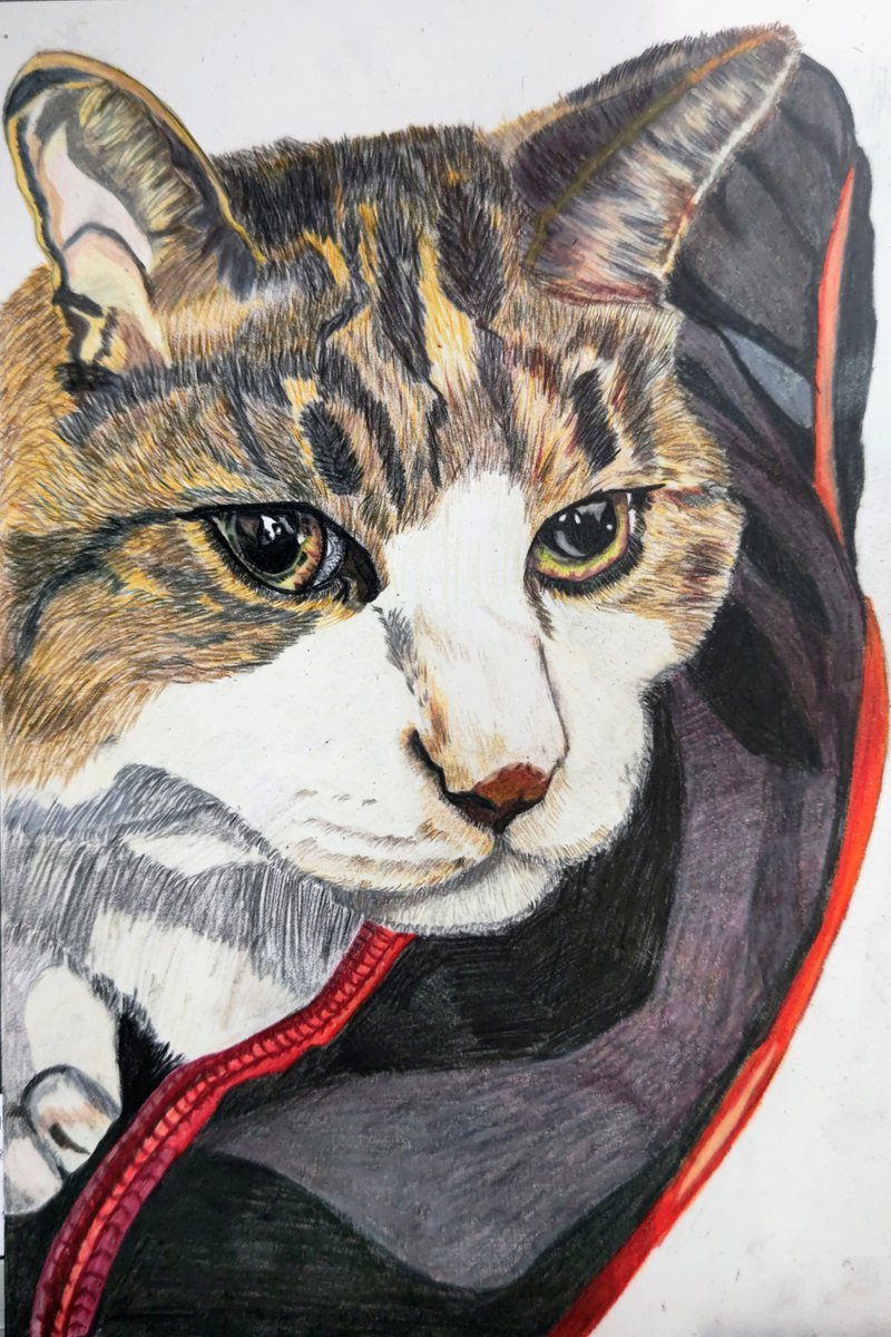 1 13 #アナログ画 #色鉛筆 #猫 色んなイラスト出してるとアニメから写実まで色んなイラストが見れて楽しい🥰 22/06/07 17:47