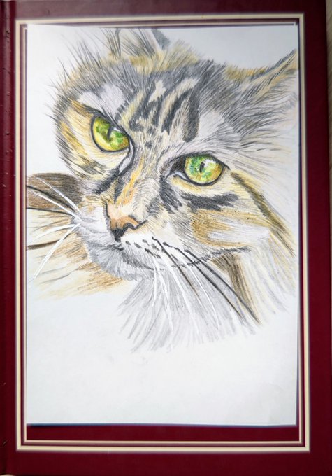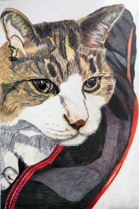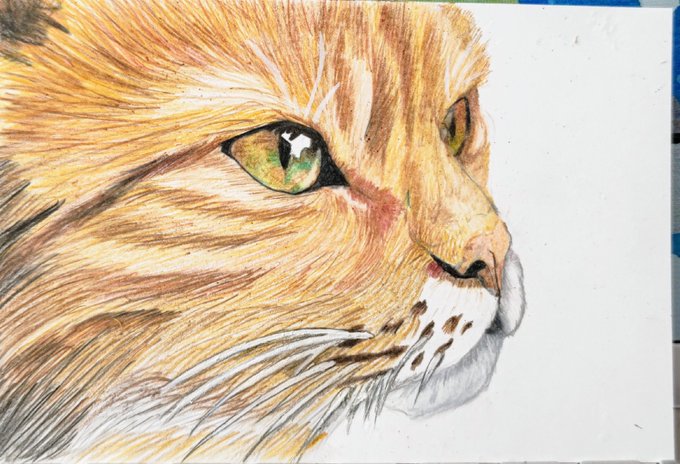 #アナログ画 #色鉛筆 #猫 色んなイラスト出してるとアニメから写実まで色んなイラストが見れて楽しい🥰