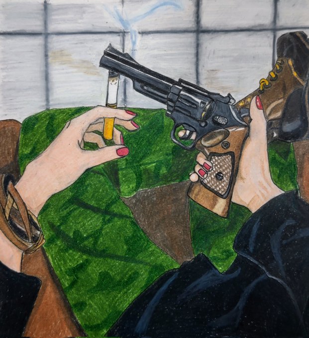 初の人物画は… 似せるって難しい… #アナログイラスト #色鉛筆 #バイオハザード #ジル