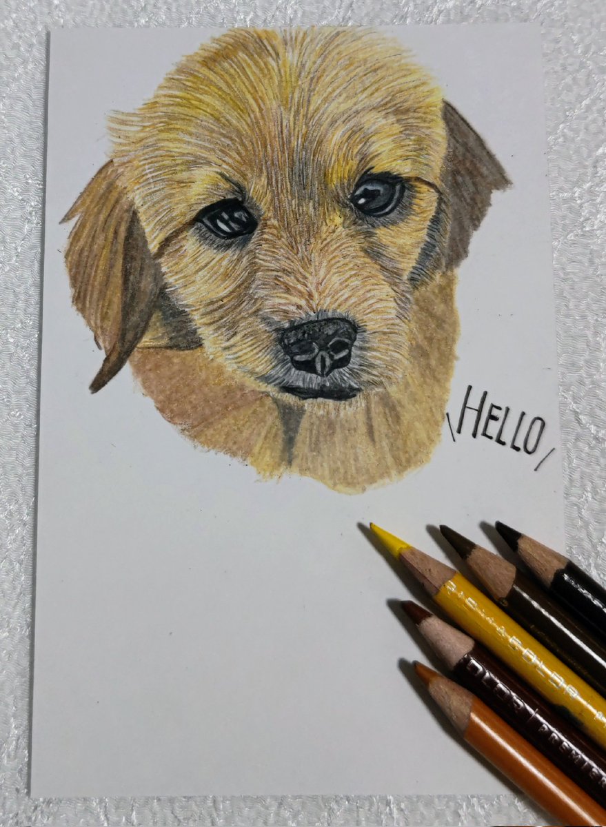 0 8 ポストカードを作ってみました🥰 グリット線教えてもらったのに難しかった😭 #ポストカード #アナログ画 #色鉛筆 #子犬 22/05/19 19:23