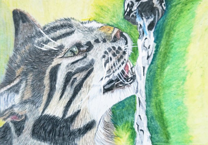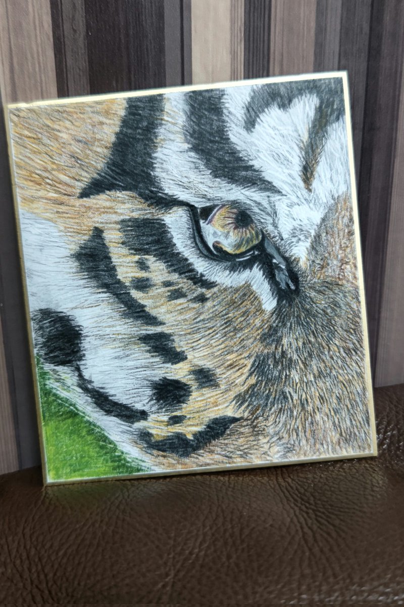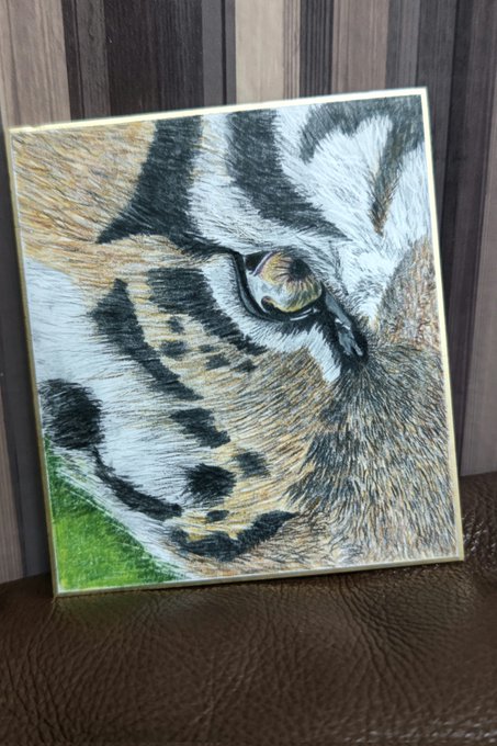 どうやったら立体的になるのでしょうか? 迷走中😣 #アナログ絵 #色鉛筆画 #トラ #色紙