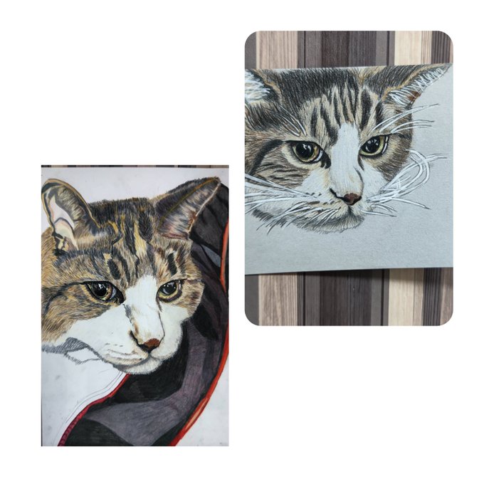 1 10 ゴロゴロゴローさんに添削してもらったので書き直してみました。 上がなおした猫ちゃんです。 難しいー #アナログ画 #色鉛筆画 # 22/05/24 20:20