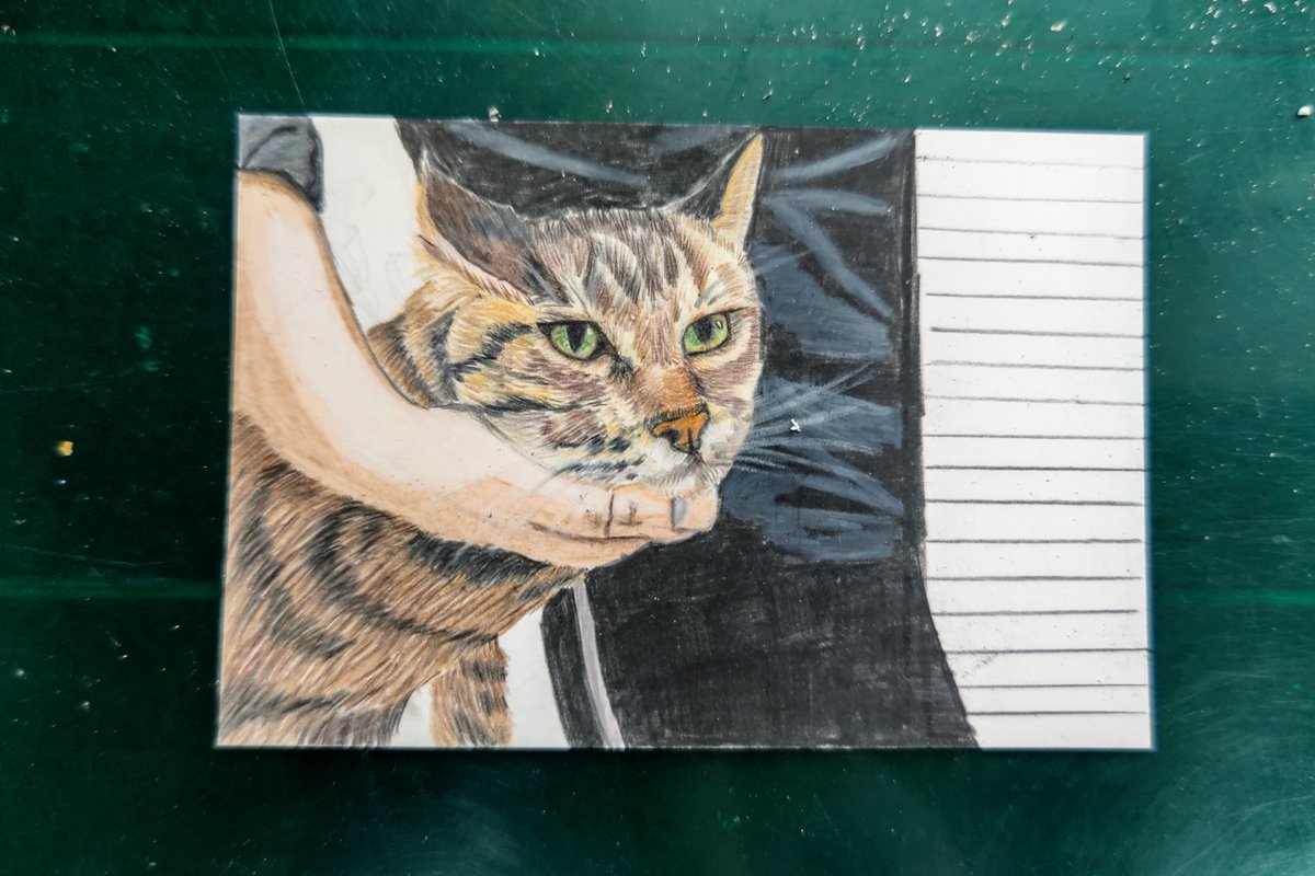 描いている途中ですでに 描き直したくなる 成長の証だろうか… #アナログイラスト #色鉛筆 #ねこ