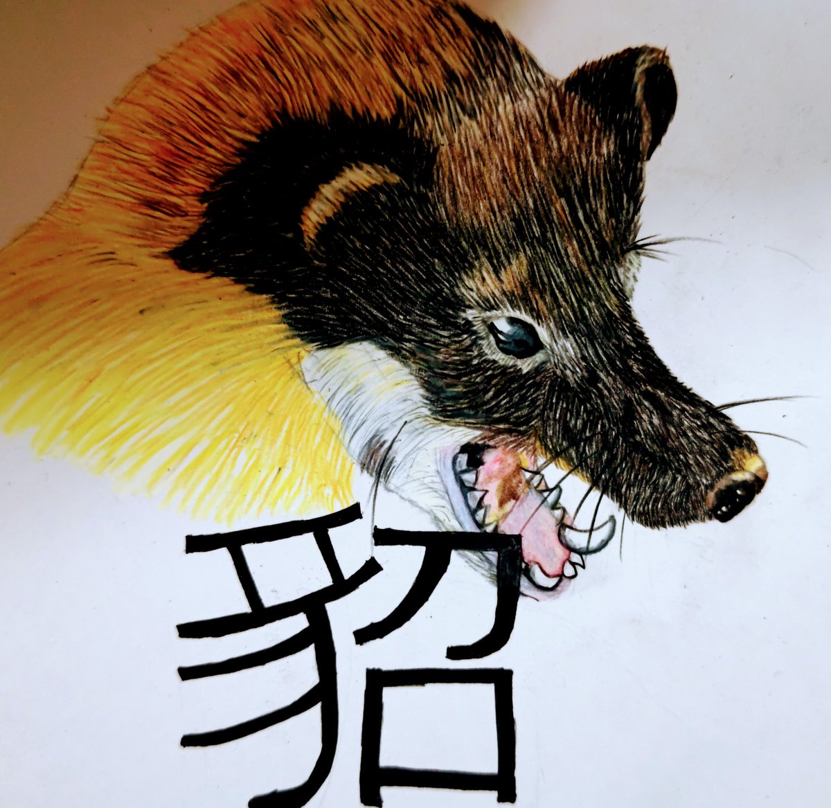 久しぶりの色鉛筆画… もっと上手くなりたいと思いつつ時間ばかりが経ってゆく #アナログ #色鉛筆画 #貂