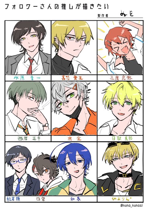 共通点:ワンコ系高生くんクラスタのお兄さん方 なんか…乙女ゲームみたいな図になってしまったな… #なかお卓 #描いたよひよりんさん #SliPaint