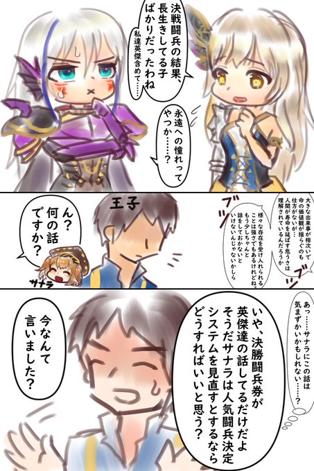 25) 英傑が決勝闘兵券になってたの面白すぎた… 公式お知らせaigis1000.jp/notification/d… 一部スクショtwitter.com/NtsmRyr/status… 漫画は黒サナラ交流2とアトナテス特別エピの内容から。永く生きるってのも、良いことばかりじゃないぜ?まぁ…王国民は新しもの好きだから…(第6回結果… #アイギスお絵かき